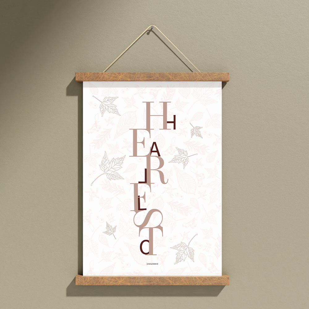 Fine Art Print poster Hallo Herfst met rosé gouddruk en posterhangers...